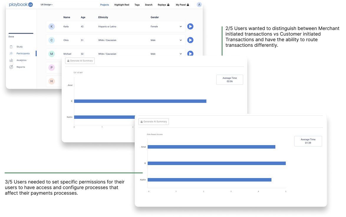 After conducting both moderated and unmoderated user interviews, I analyzed the data and I was able to categorize the insights into these 3 categories. These were balanced between current goals and added to the criteria for 2 of the user’s requests based on scope, tech feasibility, and effort.
