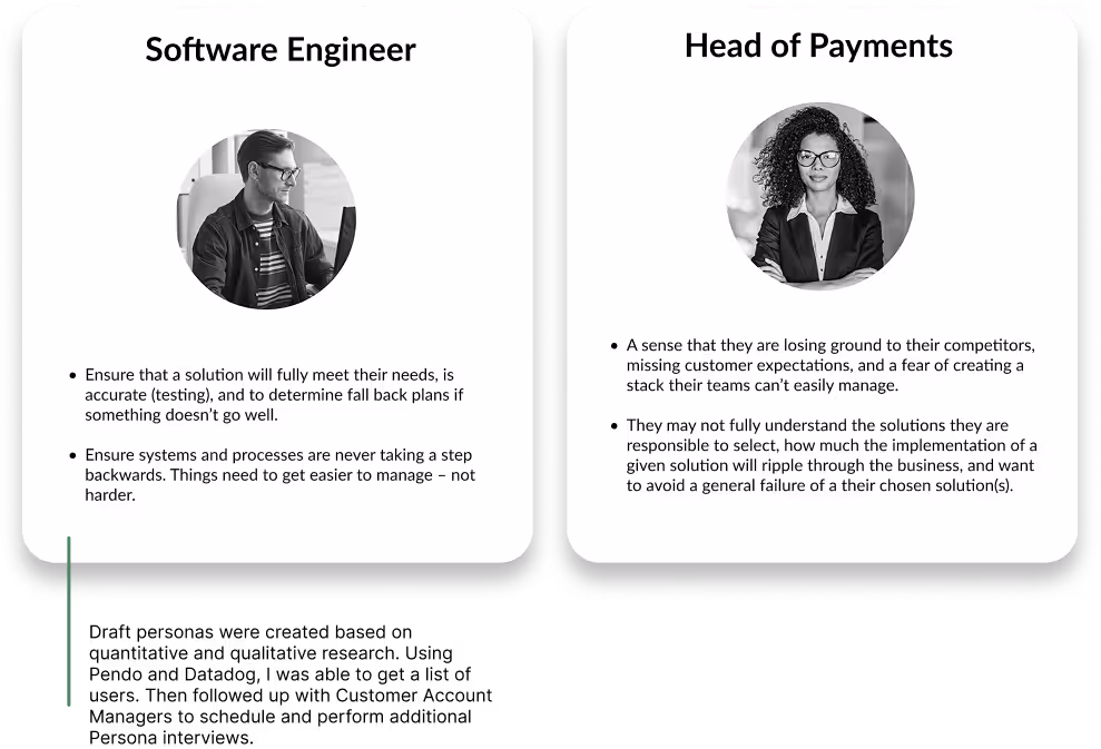 With the complex nature of Spreedly’s payments processes, we needed to make sure we were solving the right problems. I created two different user segments based on our current users.