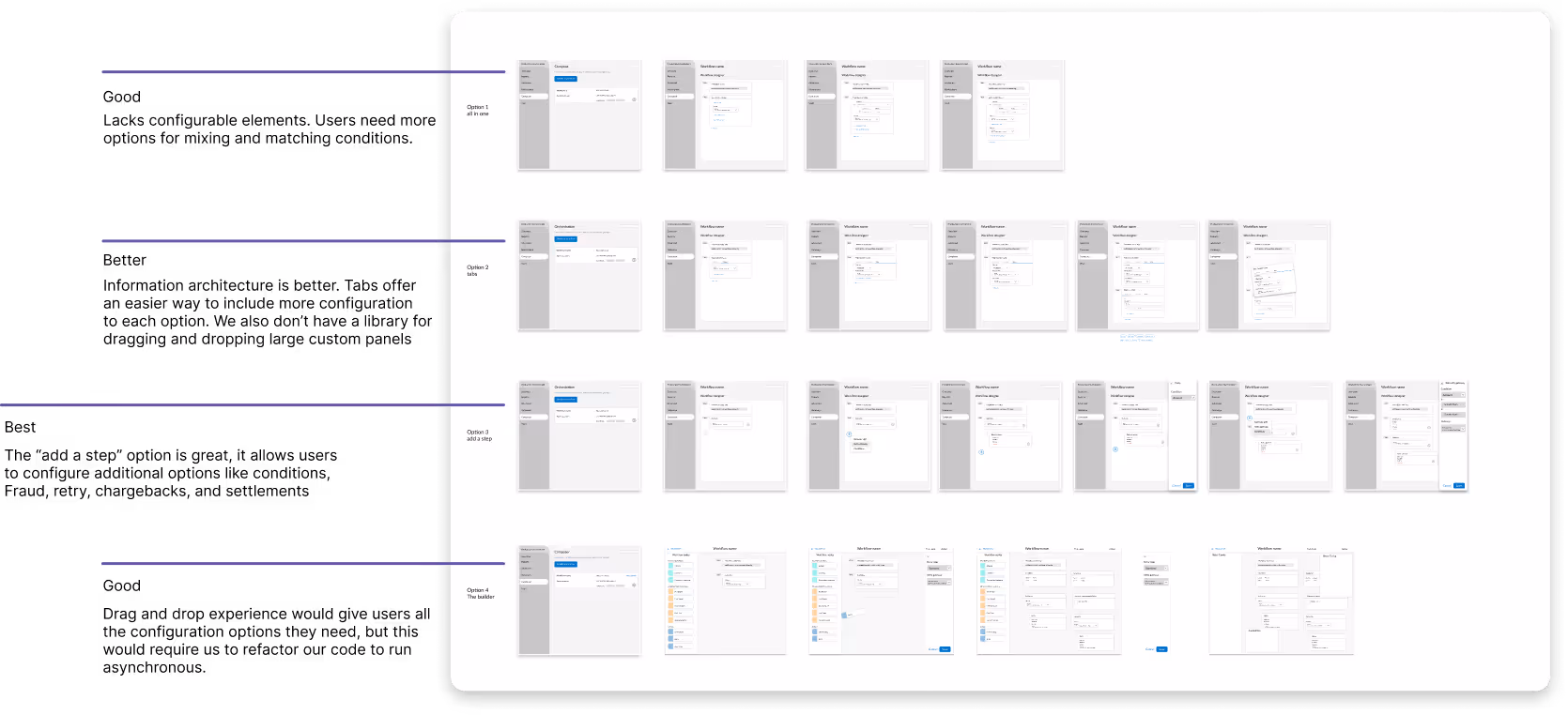 3. Varying levels of “Drag and Drop” to understand how customizable the workflows need to be